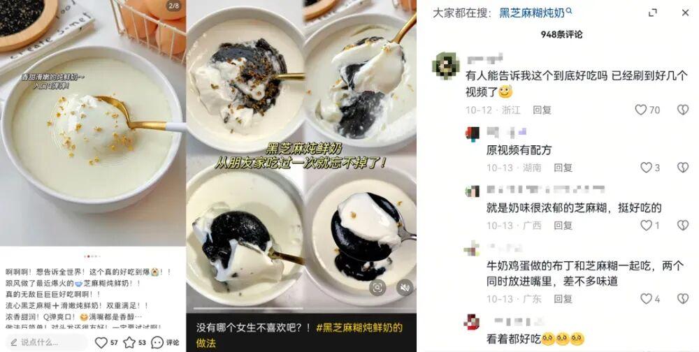 想要完美復刻黑芝麻糊燉奶,掌握配方和製作方法是關鍵一步。社交平臺上網友們大多是根據自己的需求製作,配方各異、五花八門,但大體上萬變不離其宗。