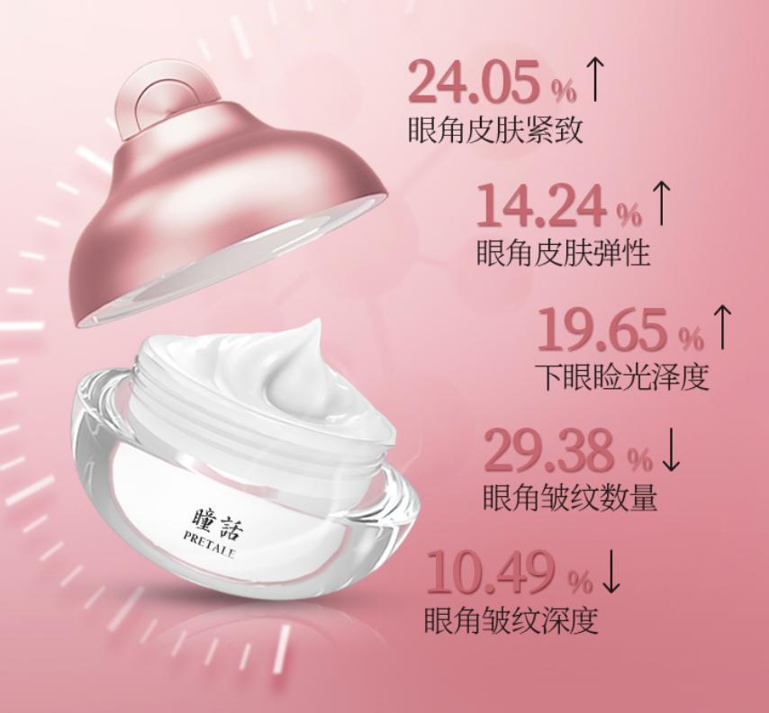 這款瞳話燕麥肽抗皺眼霜就是沿用非遺的八寶古方,添加草本提取物,以及國家發明專利的精粹原液+植萃提取技藝,針對眼部細紋的效果是有備案和功效報告的!