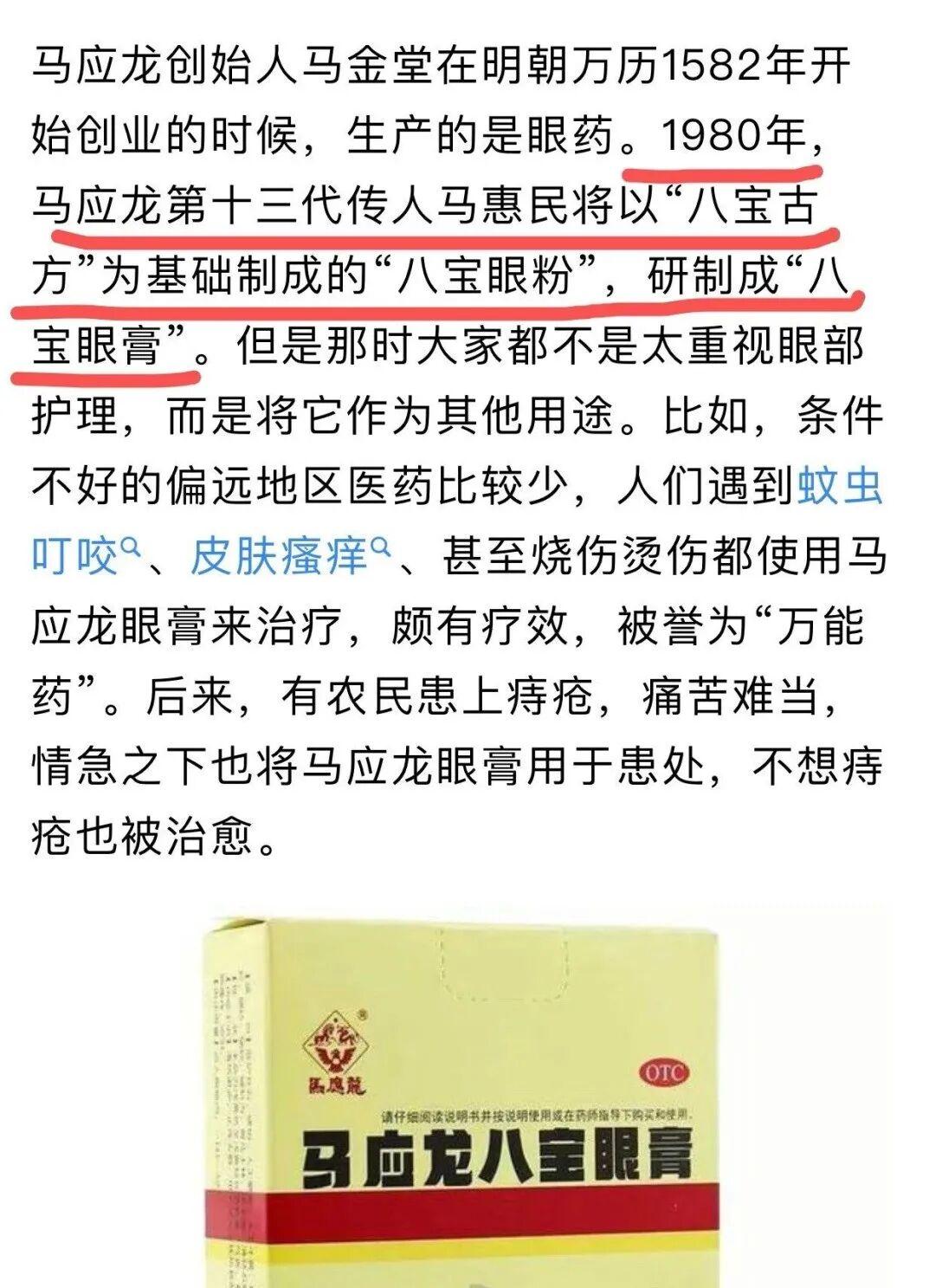 真不是邪修,只是大家不知道,原來馬應龍它就是做眼藥起家的,從明朝開始距今已有400多年曆史了,是國家·級非物質文化遺產!