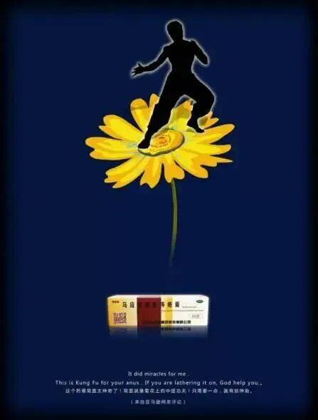 現在馬應龍和老乾媽可是歪果仁的“東方硬通貨”,甚至有外國網友做海報《菊花上的功夫》來誇它。