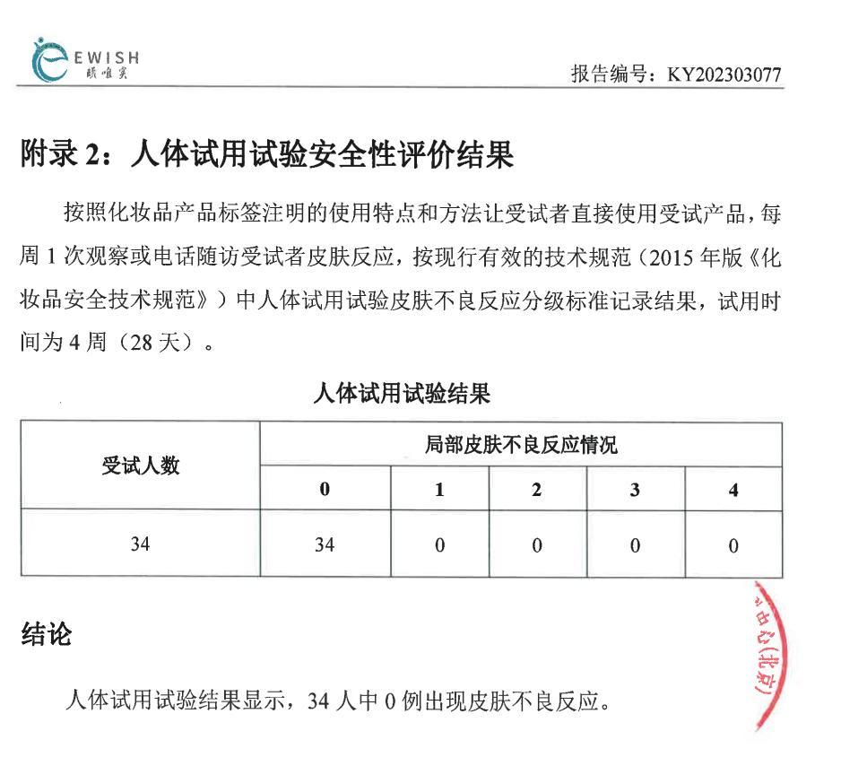 放上報告給大家看:34人中0例出現皮膚不良反應!