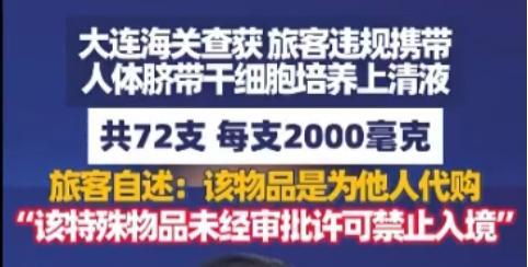 無獨有偶,今年 7 月,青島海關所屬威海海關在空港旅檢進境渠道查獲旅客攜帶含人體細胞成分美容製劑,共計 90 支,規格均爲 6 毫升/支。