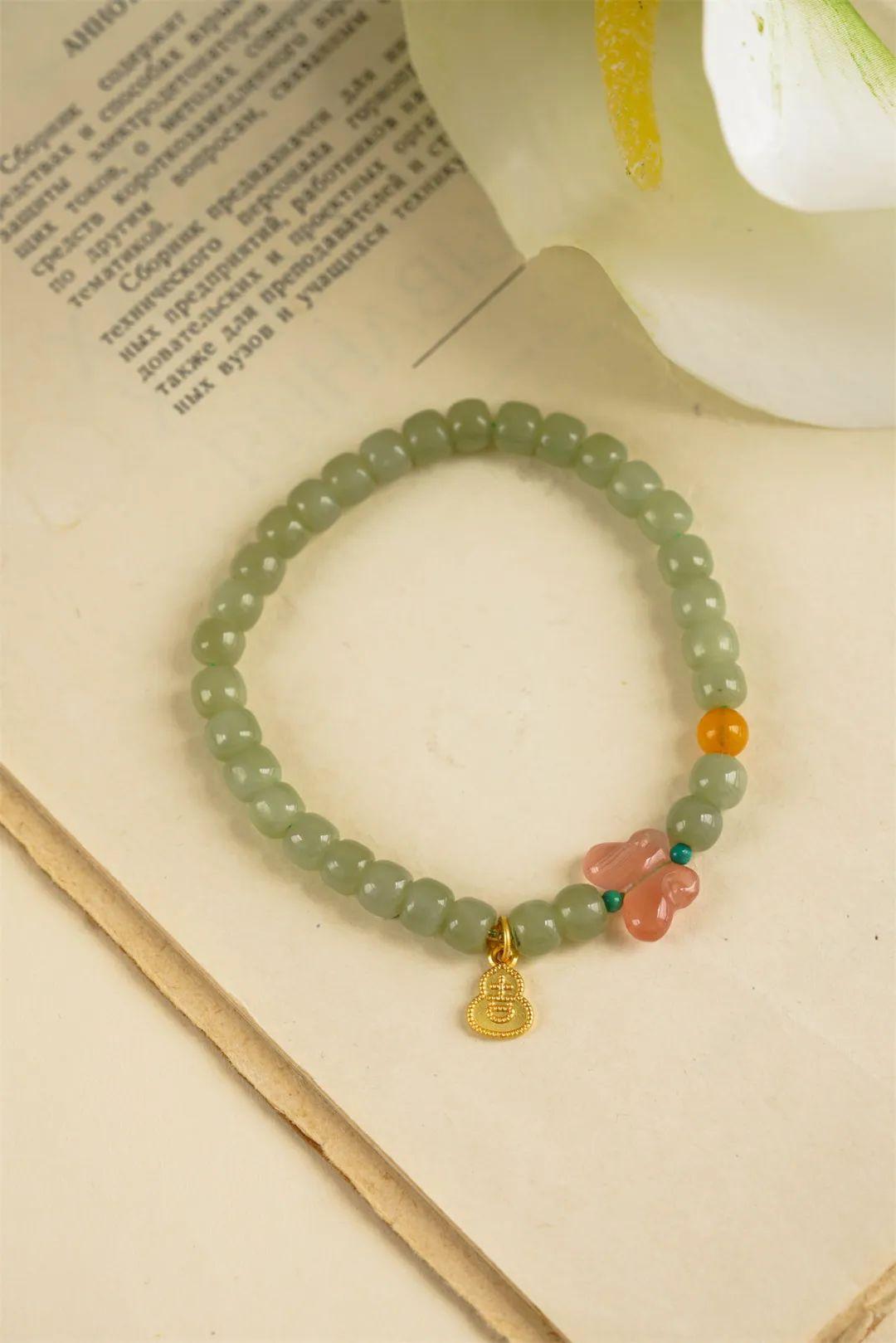 搭配緋紅瑪瑙雕刻的小蝴蝶,唯美清透。
