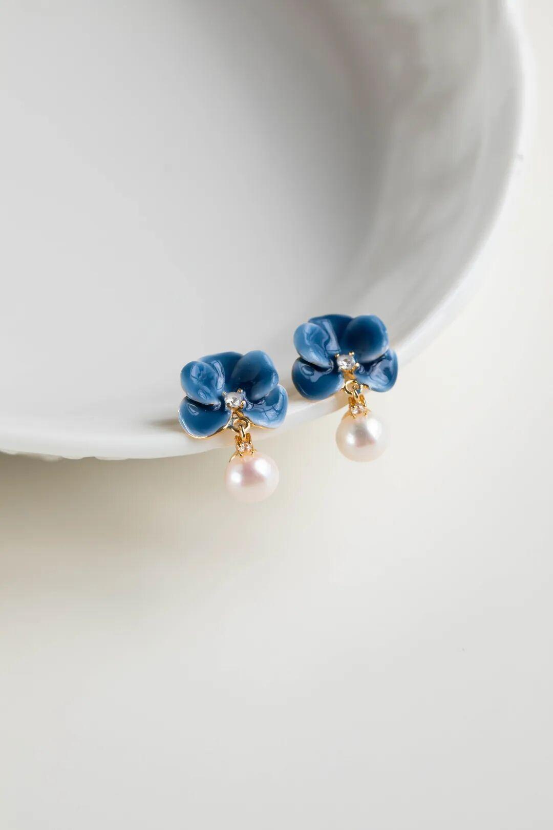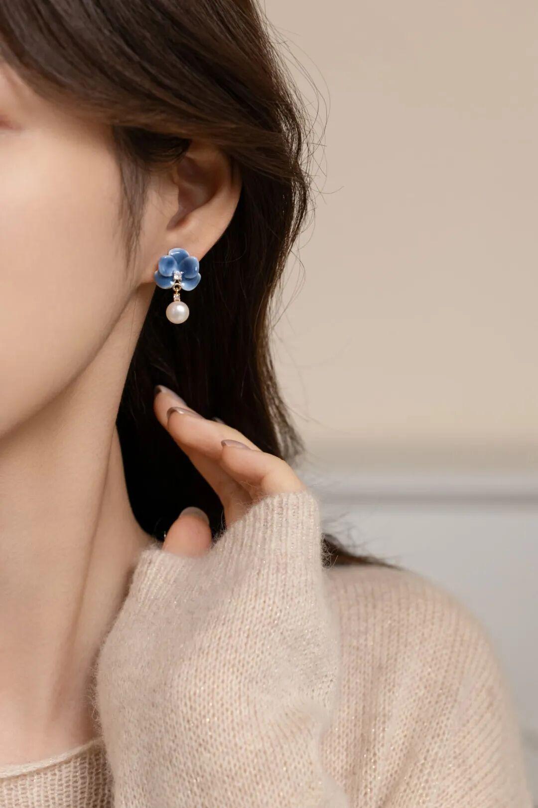 以東方美學爲設計靈感,將蝴蝶蘭的清雅和珍珠的溫潤相融, 藍釉滴油工藝打造的蝴蝶蘭精緻立體,似江南庭院的蘭花悄然綻放。