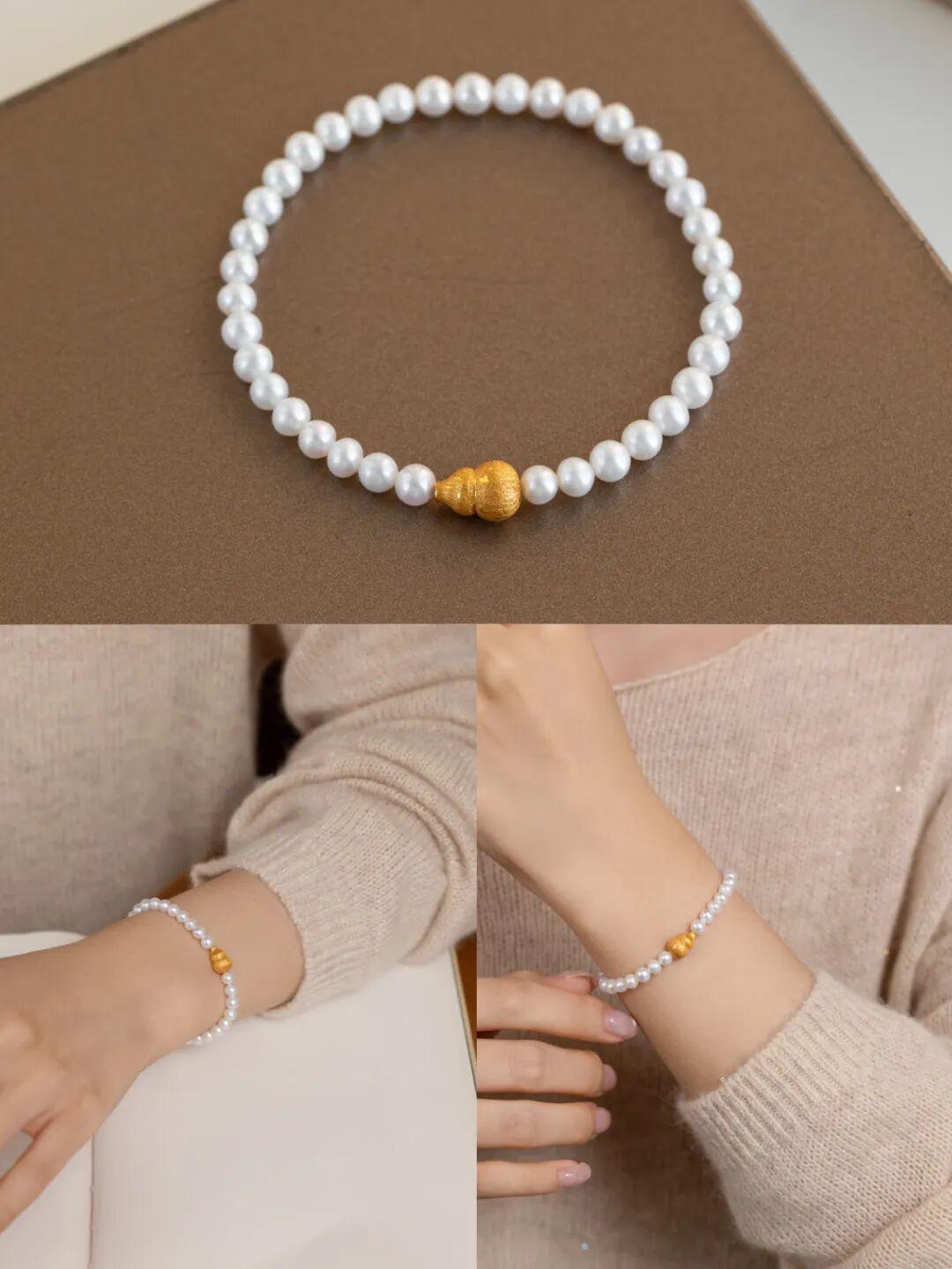 有爆火的葫蘆珍珠手串,拉絲金工藝的小葫蘆搭配強光小米珠,化繁爲簡,質感上乘,簡約又高級,非常適合日常佩戴。