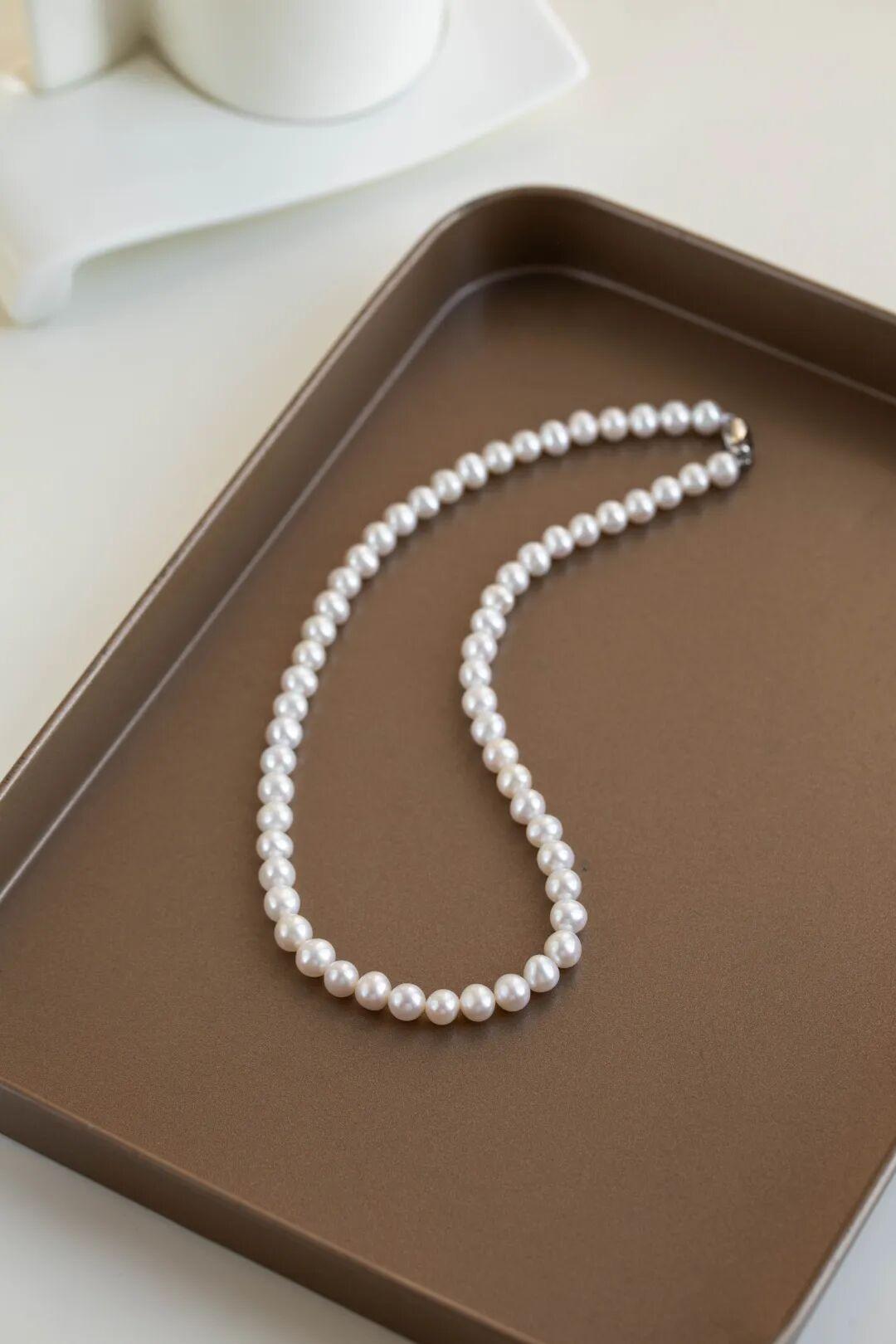 材質:淡水珍珠、S925銀配(帶證書)尺寸:珍珠:7-8mm;鏈長:40cm