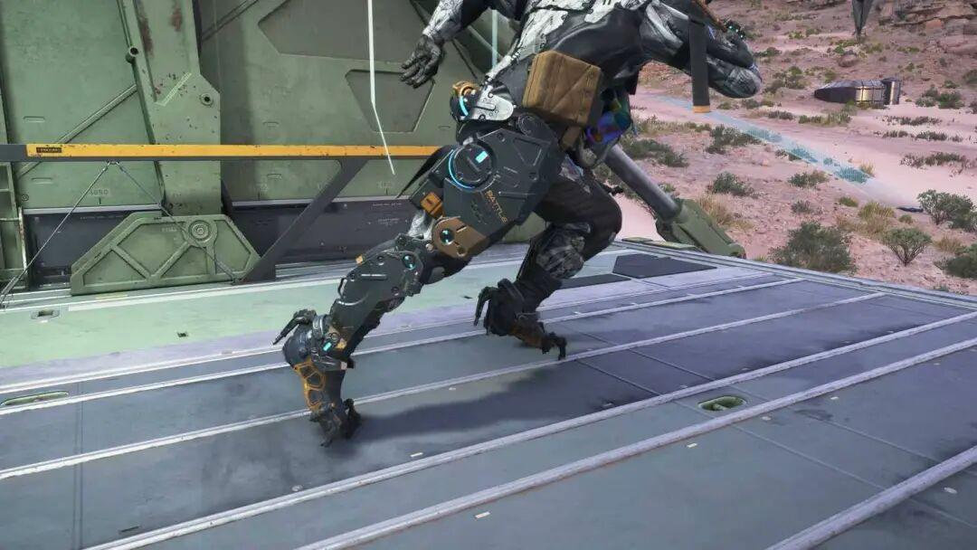 如果你在遊戲裏把視角拉近,盯着山姆的腳看,就會發現玄機。山姆的外骨骼有着非常完整的腳部結構,那層金屬裝甲是一直包裹到腳底板,直接踩在地面上的。