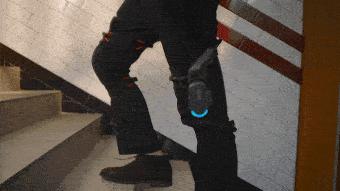在這個過程中,外骨骼在幹什麼?它就像是一雙有力的大手,幫你託了一把大腿,讓你抬腿邁步的時候省點勁兒。