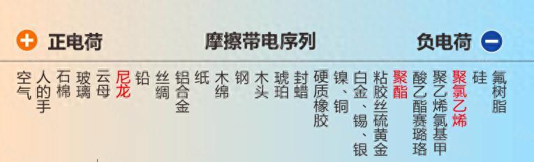 產生靜電的概率和材料本身也有關。下面列舉的物體,兩兩之間距離越遠,越容易轉移電荷、產生靜電。