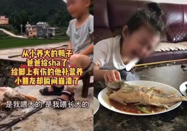 甚至有的家長殺掉孩子日日小心呵護的寵物,端上桌給孩子喫。孩子在鏡頭前崩潰大哭,家長舉着手機邊拍邊笑。這樣的視頻看得我血壓狂飆,竟還有人在評論裏附和大笑!