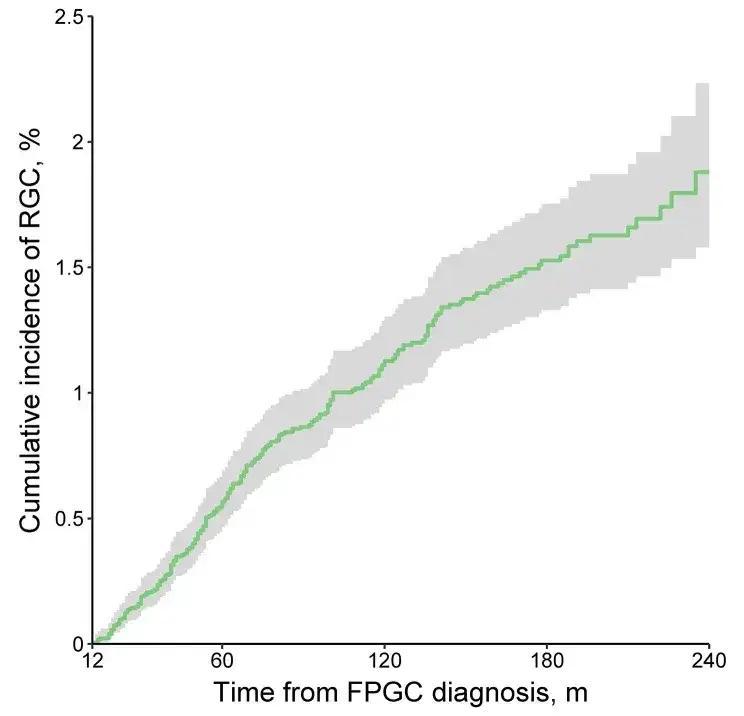 原發性胃癌(FPGC)診斷1年後殘胃癌(RGC)的累積發病率