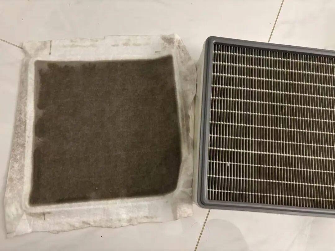下圖是同事家空氣淨化器的濾網,不敢想這是過濾了多少“髒污”。看得我雞皮疙瘩都起來了!
