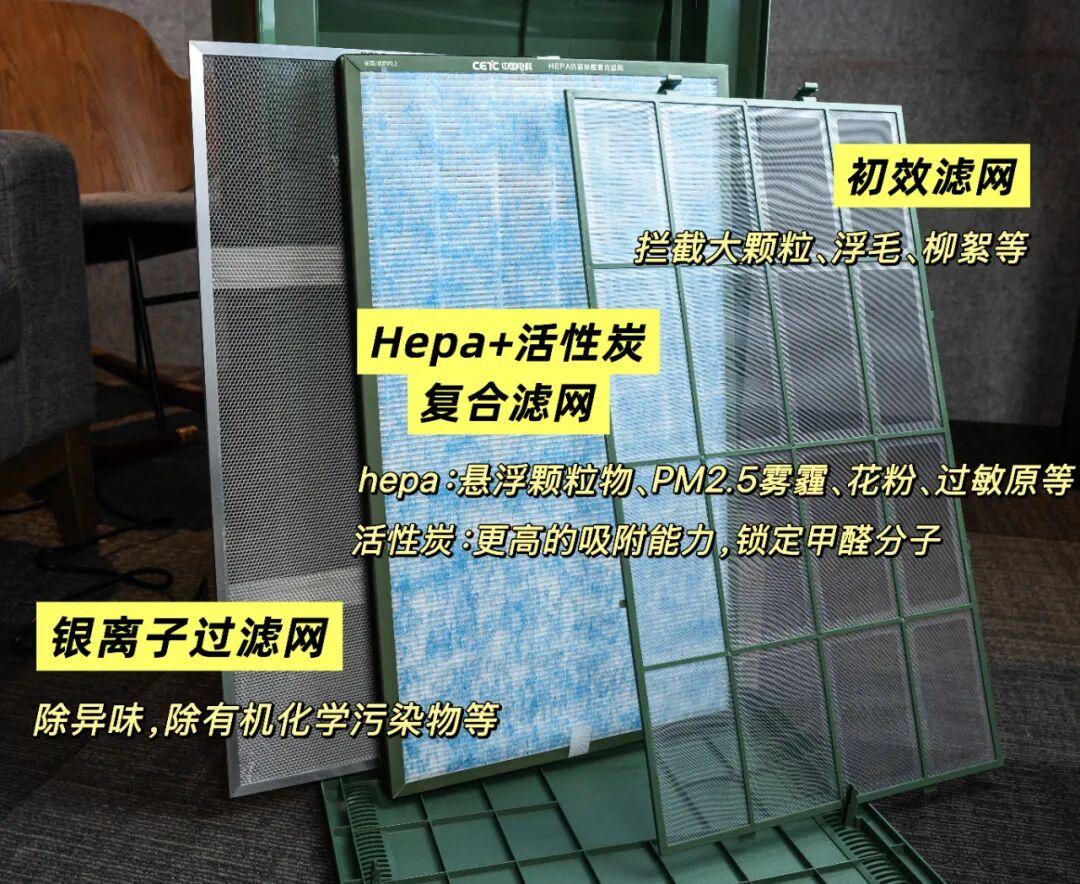 尤其是中間那層至關重要的HEPA抗菌除醛複合濾網,正面過濾,背面活性炭吸附,雙管齊下,效率翻倍!