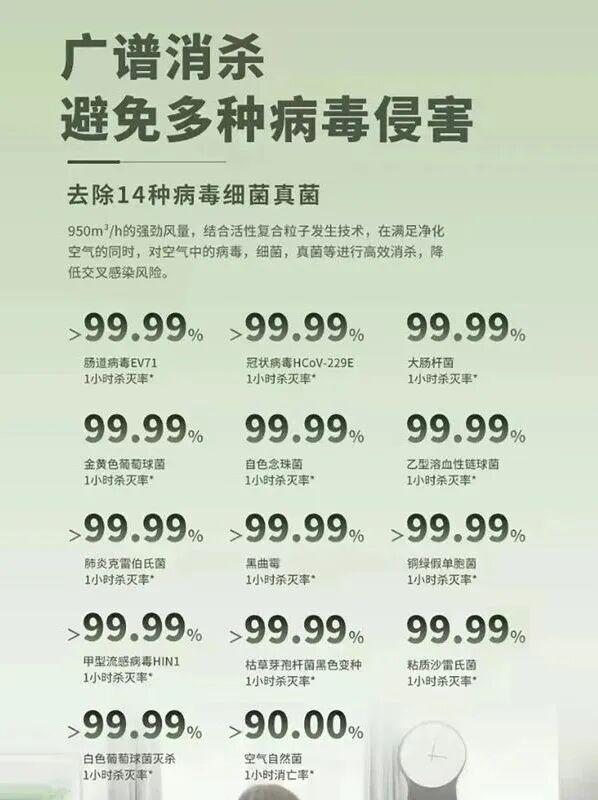 消毒能力專業:具備衛健委備案的“消毒產品”資質,常見的流行病毒、過敏原,如甲型流感病毒、腸道病毒可消殺,花粉、塵蟎等可過濾,並且都有檢測報告。