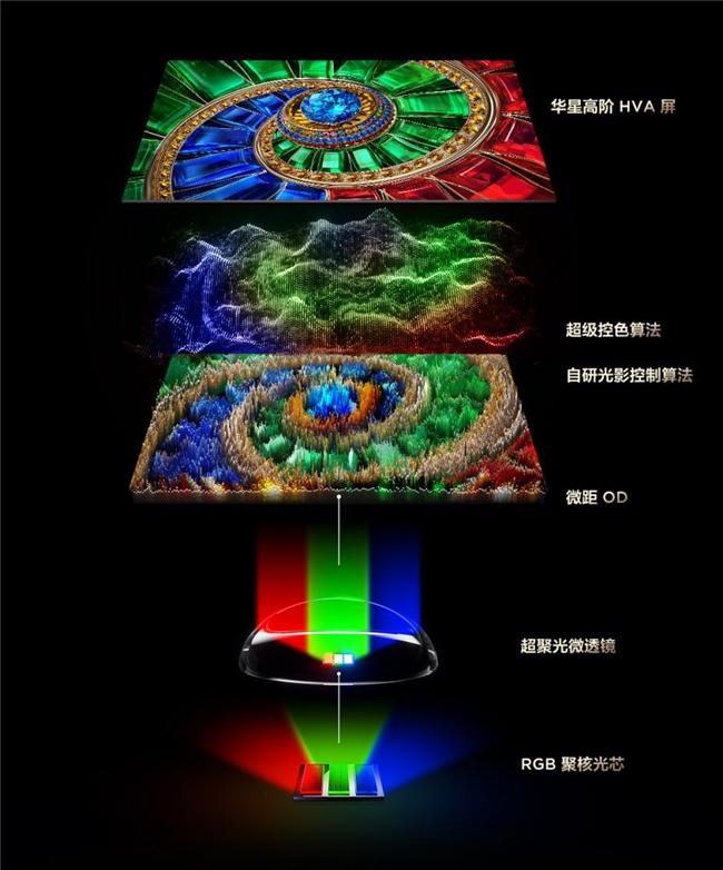 要搞懂RGB-Mini LED的魅力,得先知道它的核心優勢。普通Mini LED電視是“單色背光+彩色濾光片”,相當於“先發光再調色”,色彩純度難免打折;而RGB-Mini LED是紅、綠、藍三原色燈珠獨立發光,相當於直接用三原色畫畫,從源頭保證了色彩純淨度。