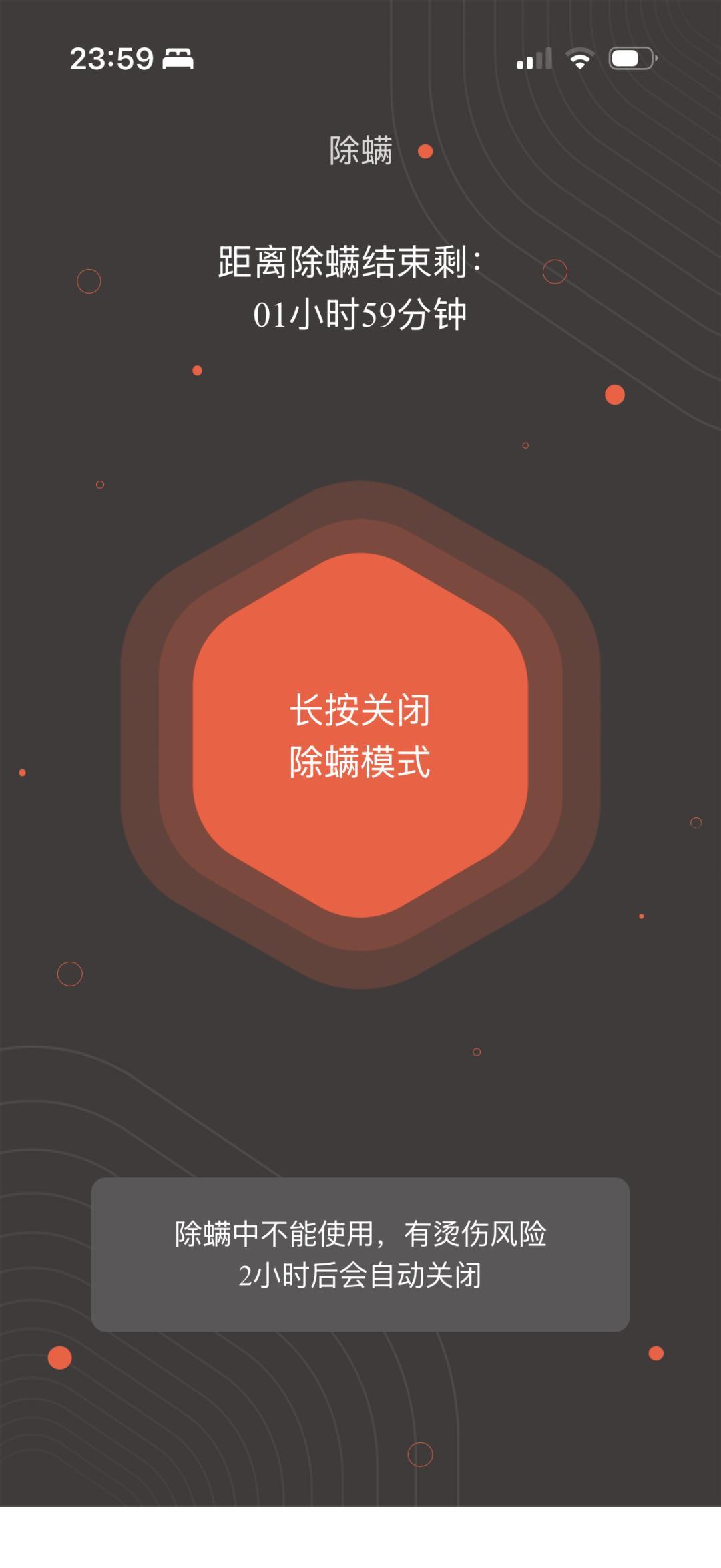 它還自帶“除蟎模式”,作爲皮膚敏感的人,這個除蟎功能真是太好用了,在APP內開啓後放着就行,很方便,開啓後能以55°C高溫持續工作2小時。愛乾淨的我,終於能擁有一個真正潔淨又溫暖的睡眠環境了。