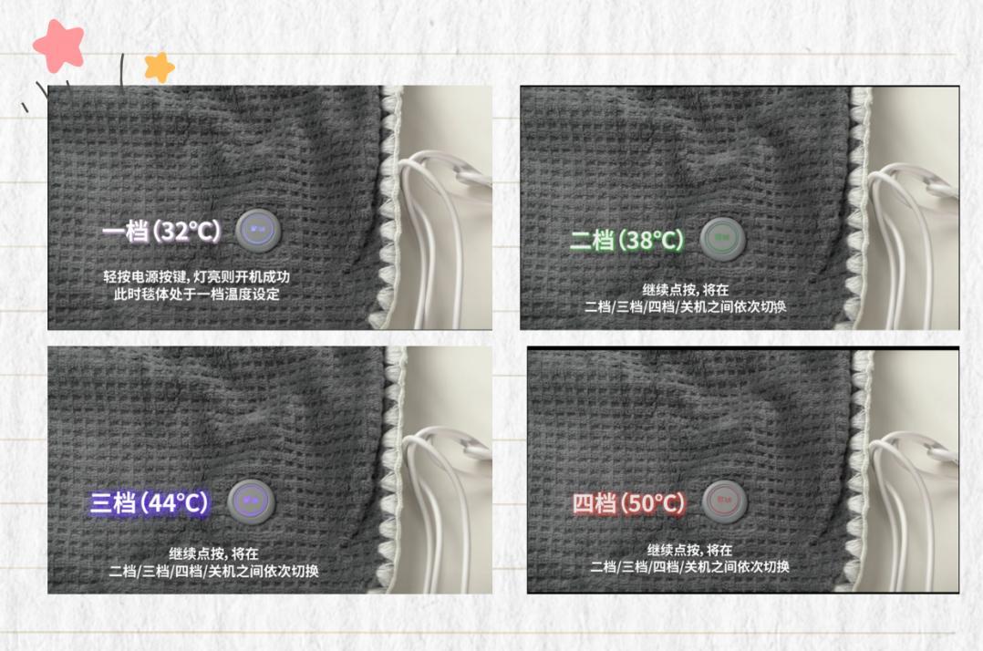 32°C是人體最佳的睡眠環境溫度,而這個智暖毯通過NTC智能溫控系統,就能穩穩地把溫度維持在這個黃金區間。