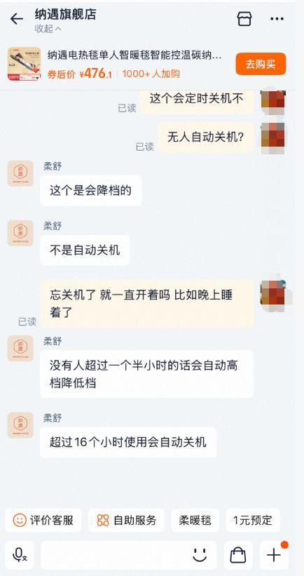 如果沒有人使用,離毯90分鐘後自動降檔至25度,超過16個小時也會自動關機。
