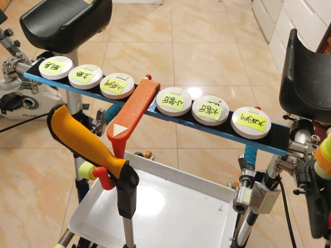 有一次,伍叔爲了關燈,手肘離開了助行器,失去平衡摔倒了。小伍分析了監控,決定把所有開關“搬”到助行器上。一根不鏽鋼管被固定在助行器橫樑上,上面安裝了3D打印的平臺。平臺上貼着魔術貼,魔術貼上粘着6個小米無線開關。洗手間、廚房、臥室、客廳……家裏動線上的所有燈光,現在都彙集在手邊。伍叔再也不用冒險去夠牆壁。他只需要手指動一動,或者手肘輕輕一彎,燈就亮了。