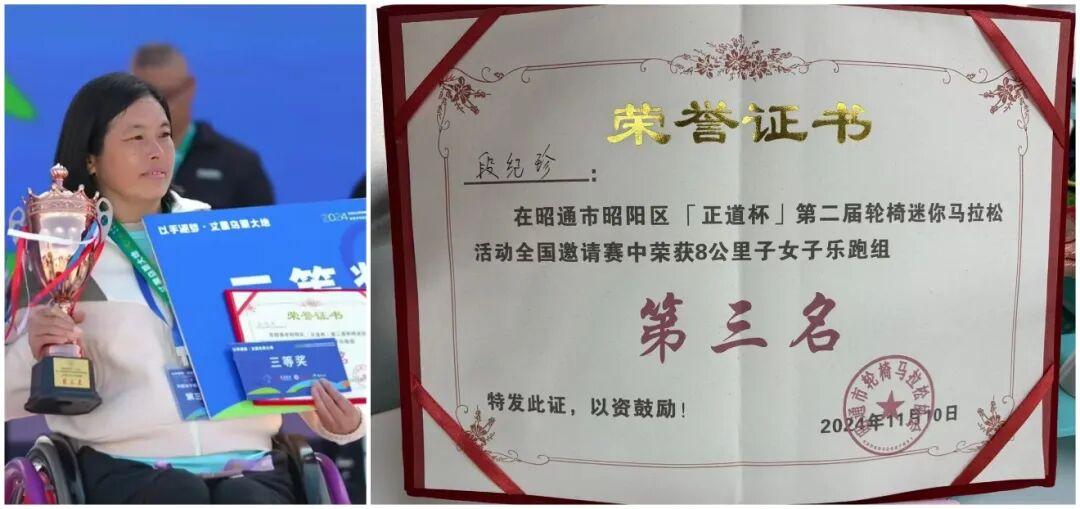 段姐在老家昭通的輪椅馬拉松比賽中獲得三等獎 | 圖片來源:受訪者提供