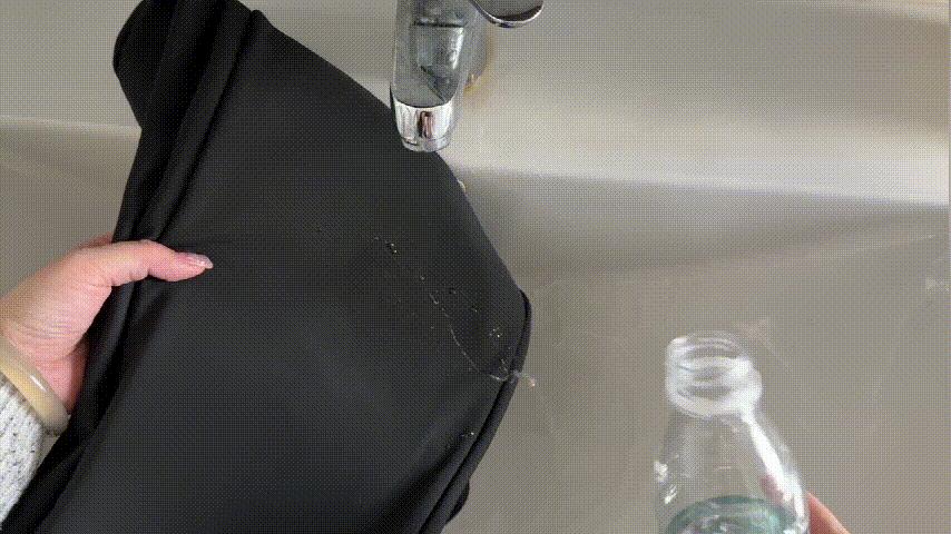 再來個更猛的:直接用水龍頭對褲子進行施壓沖水都沒問題。