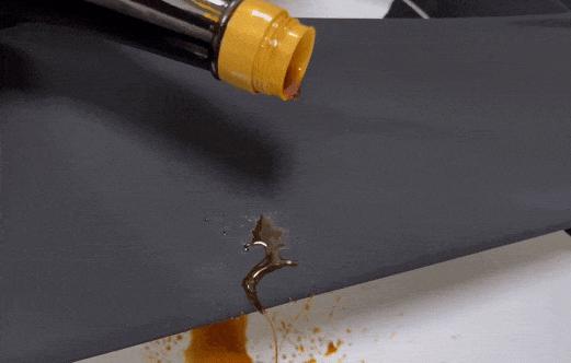 再模擬日常喫飯,醬油、湯等不小心濺身上的防污實驗: