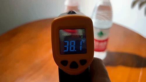 我們還準備2瓶38.6℃左右的水,把這2瓶水分別用7熱能光感褲和普通褲子包裹起來,放到冰箱的冷凍室。