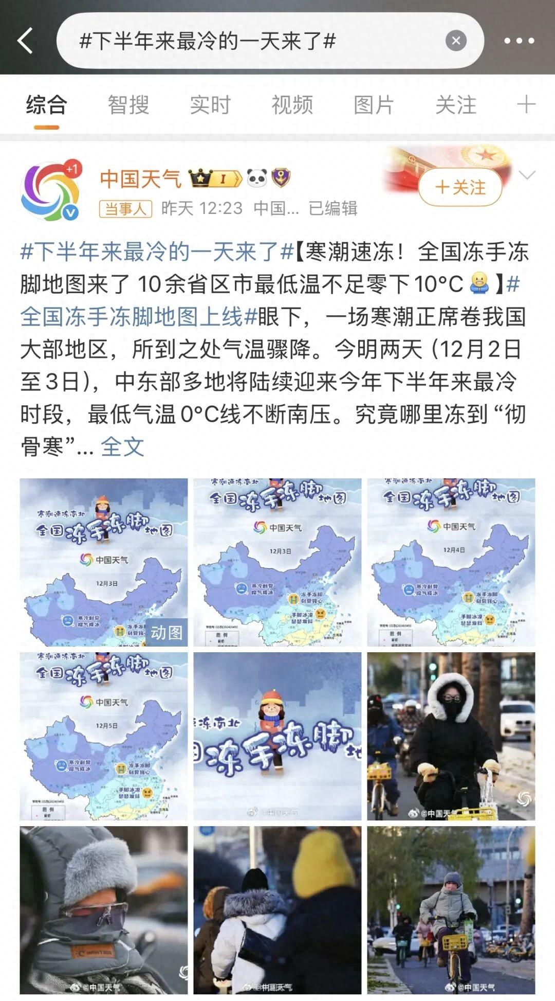 全國大降溫又來了!!北方一夜入冬,很多地方一下子降溫到零下10℃,南方人也開始感受到了哆哆嗦嗦不得不穿棉襖的寒冷......