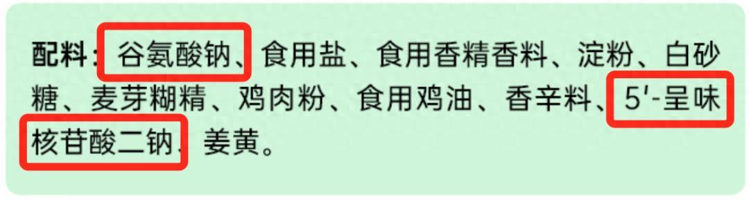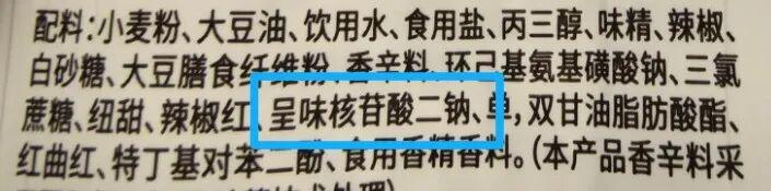 在我國,呈味核苷酸二鈉被列入《食品安全國家標準 食品添加劑使用標準》(GB 2760),允許在各類食品中“按生產需要適量使用”[6]。因爲本身具有極強的鮮味,少量添加即可達到所需效果,過量反而會影響風味。所以,呈味核苷酸二鈉在食品中的添加量通常非常低,用多了反而味道會變差。(看看食品裏配料表的位置就知道了↓↓↓)