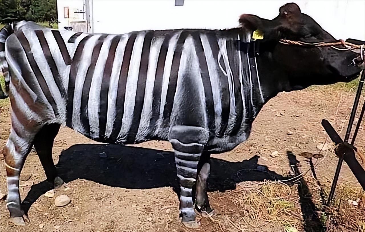 被塗上斑馬紋的牛。圖片來源:reddit