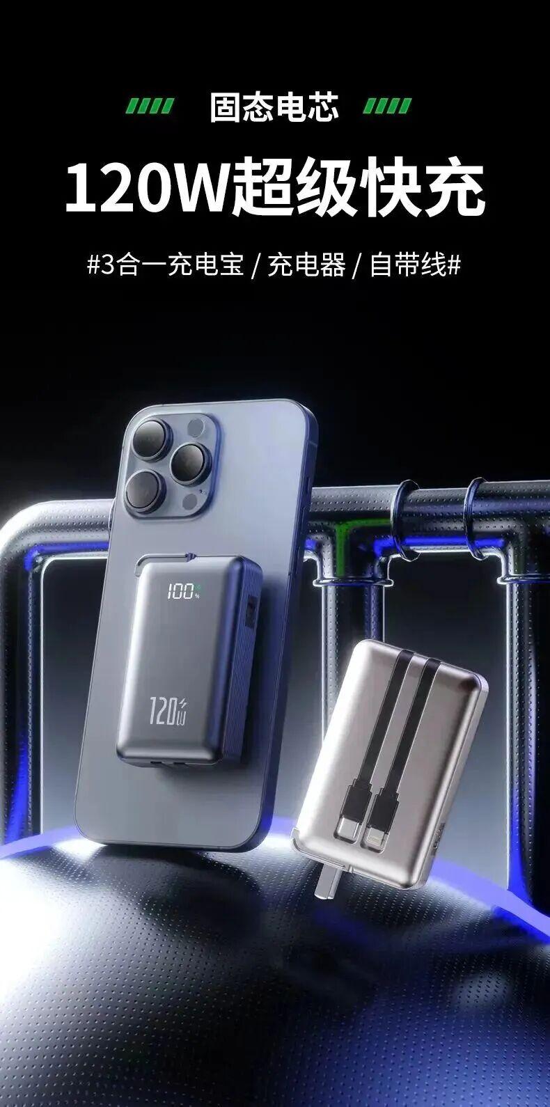 ✅自帶快充雙線:C線+L線,支持120W/PD20W雙向快充,蘋果安卓都可用