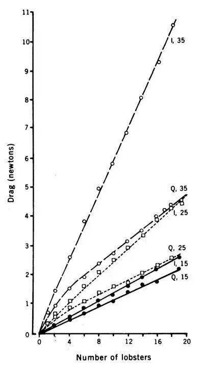 1976年,赫恩金德和同事比爾做了一個巧妙的實驗:他們在水槽裏測量單獨游泳和排隊游泳的龍蝦受到的水流阻力。