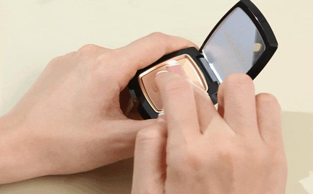 沾取少許粉膏拍打上一層,口紅就能遮了個七七八八。