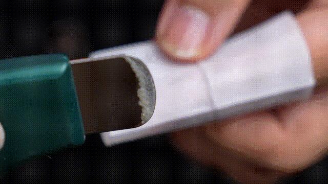 然後用附贈的黑棉棒或黑頭鏟,輕輕一刮就可以溫柔地給“草莓去籽”了!