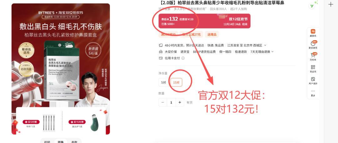 來說大家關心的價格。官方雙12活動3盒裝(15對)還要132元!(平均1對8.8元),我們談來了超大福利——