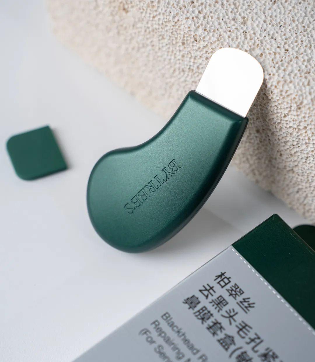 當黑頭白頭都浮出來之後,就可以用自帶的黑頭棉籤或者黑頭鏟輕輕刮掉啦~