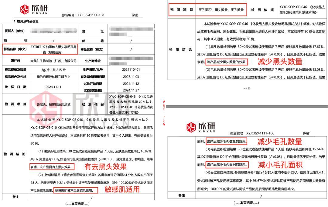 品牌方提供,報告編號:XYJCR241111-158、XYJCR241111-166,實際使用效果因人而異