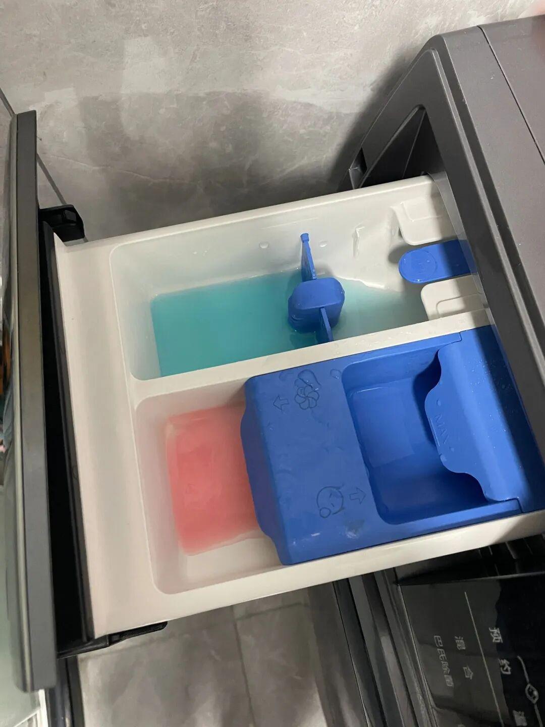 以前習慣用洗衣液洗衣服,每次輪流洗護加柔順,全套下來就要花掉半天時間。有娃家庭應該體會更深,大人孩子衣服需要分開洗,步驟直接無限疊加。更別說還要定期清理洗衣機的水槽。