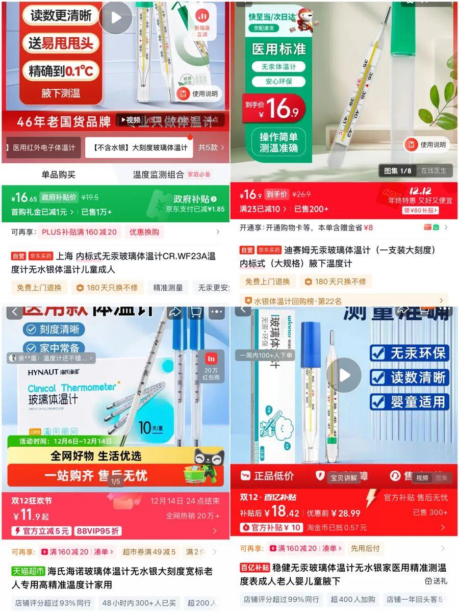 電商平臺上,有大量“無汞玻璃體溫計”供選擇,價格也不高(網絡截屏)