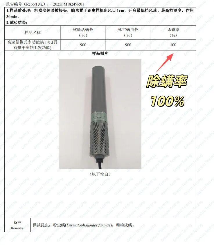 高熱熱風檔位能除蟎!報告顯示,除蟎率100%!