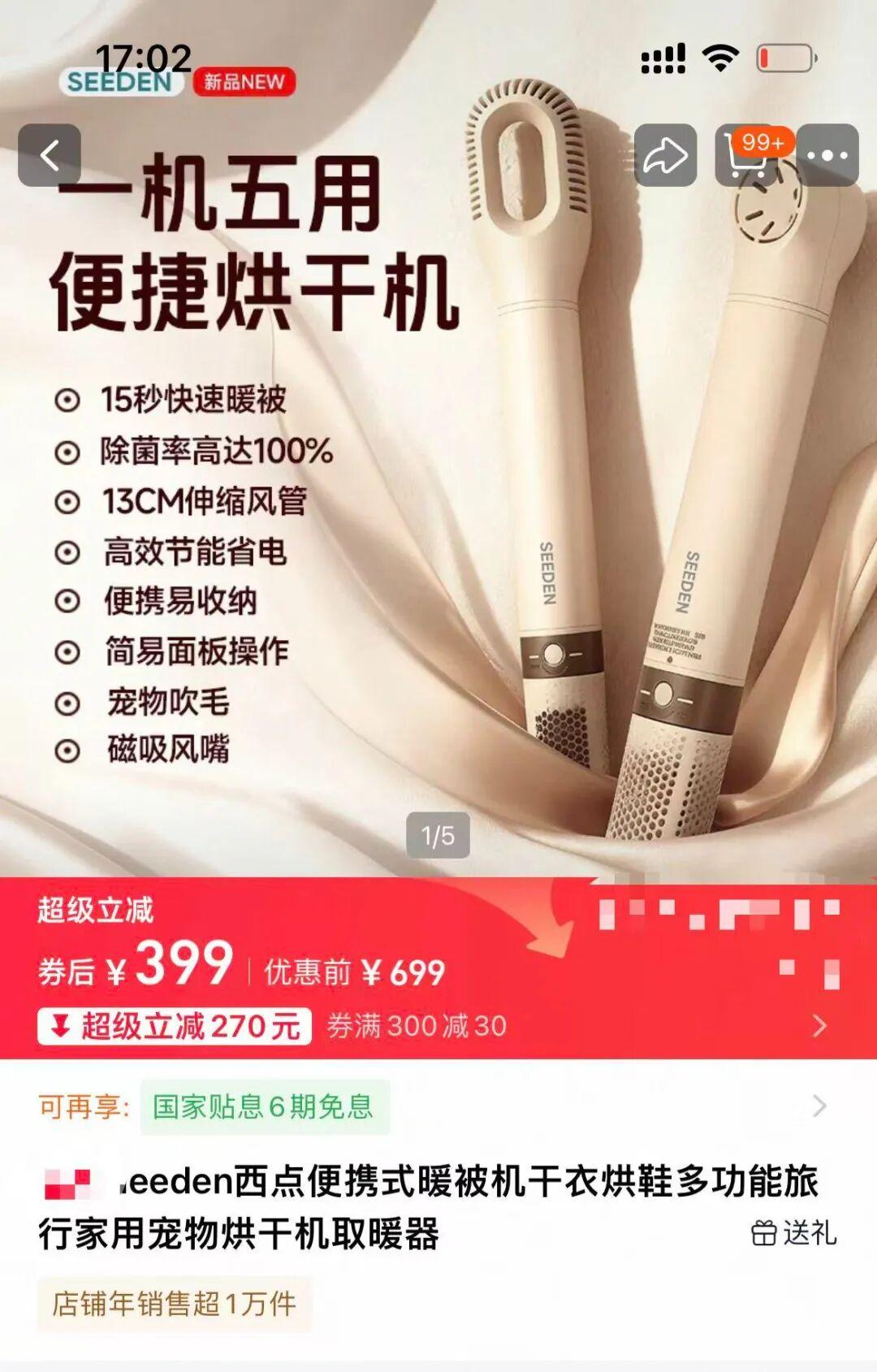 它是SEEDEN五合一高速便攜式多功能烘乾機。