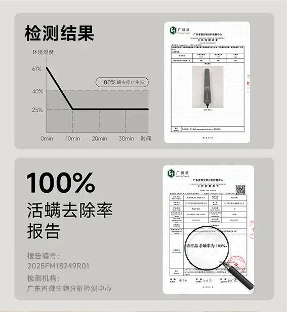 除蟎黑科技: 報告顯示 100%去除蟎蟲。