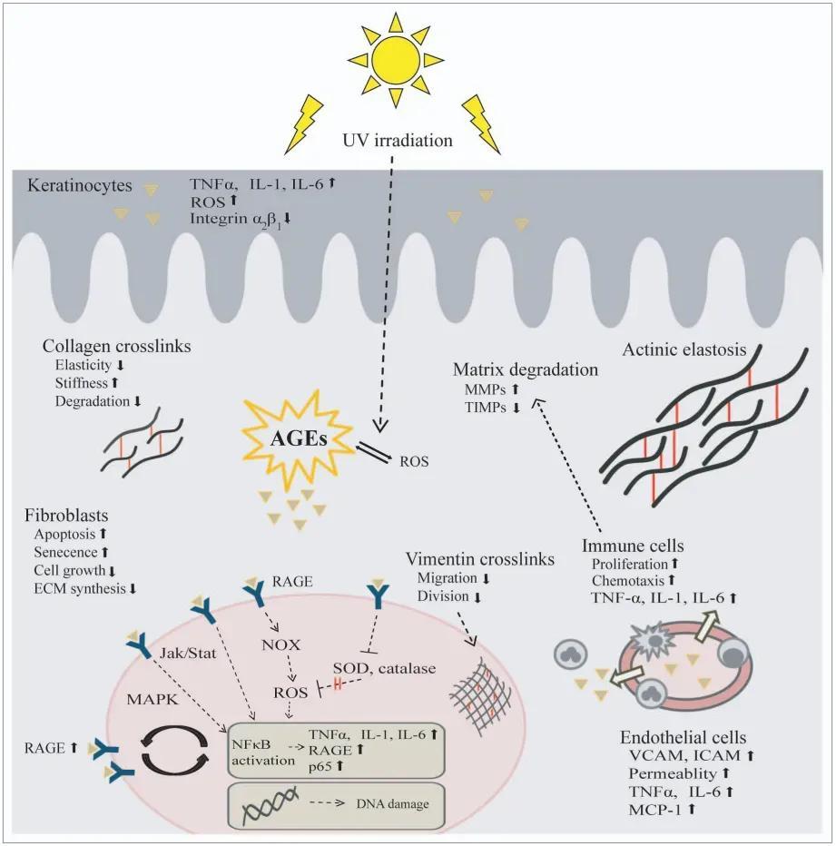 4.加速光老化:紫外線的暴露會放大或加速糖化產物的積累。