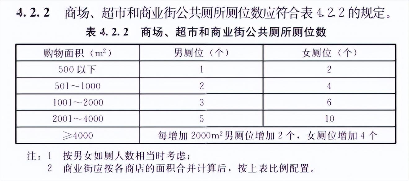 2016 年版《城市公共廁所設計標準》中,對商場裏男女廁位的數量規定