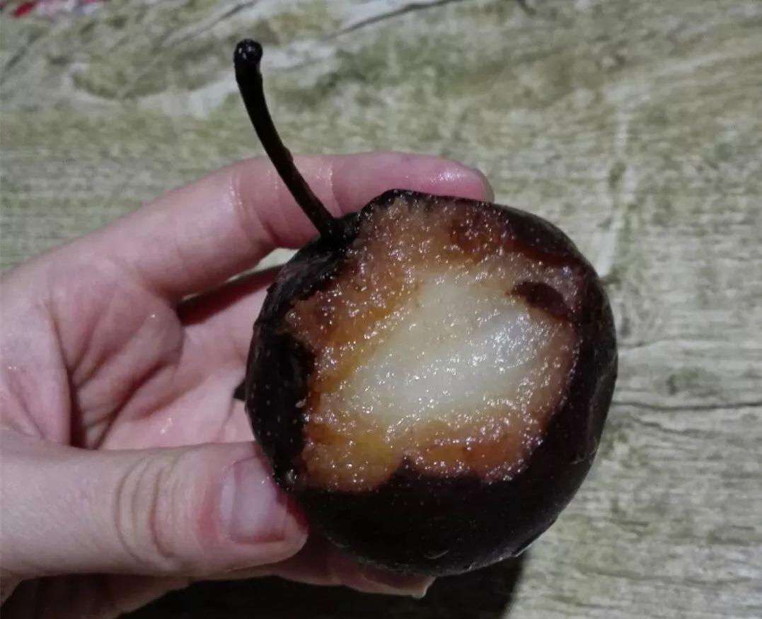 外觀黢黑硬如石塊的凍梨,是南方人無法理解的暗黑水果,但卻甜得離譜。把凍梨放進涼水裏緩(huān),梨子外表慢慢結冰,捏開透亮的冰殼,半化開帶冰碴的凍梨就是最好的狀態,先吸果汁再啃果肉,入口冰爽甘甜,黏黏地糊了一手。化開的凍柿子不再酸澀,綿甜清香。而化開的凍花紅則是酸甜清涼,一口一個。