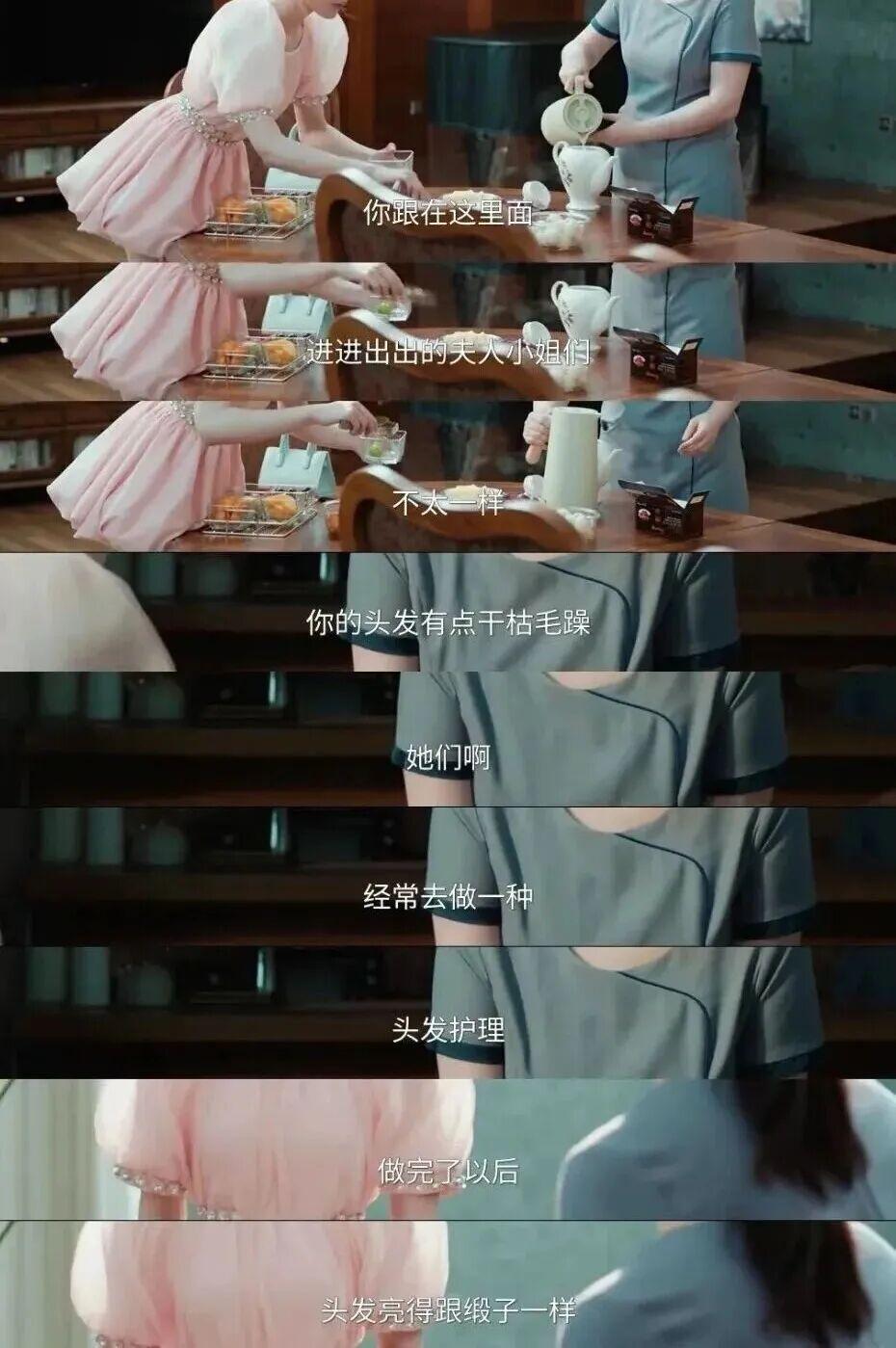 當女主許妍好心幫保姆添水果時,被對方一句“您頭髮有點乾枯毛躁”瞬間戳中軟肋,真的是社交暴擊。