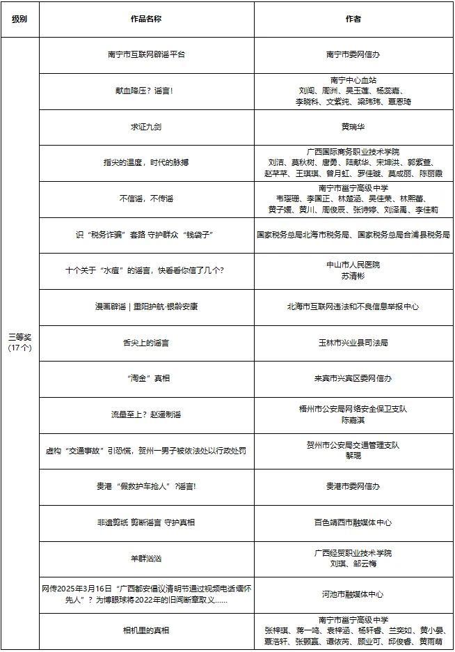 2025年廣西互聯網闢謠作品網絡徵集活動獲獎名單揭曉