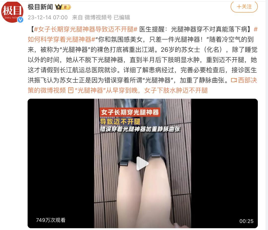 新聞中提到的並不是所有光腿神器都不能穿,而是過緊的光腿神器不要穿。那麼
