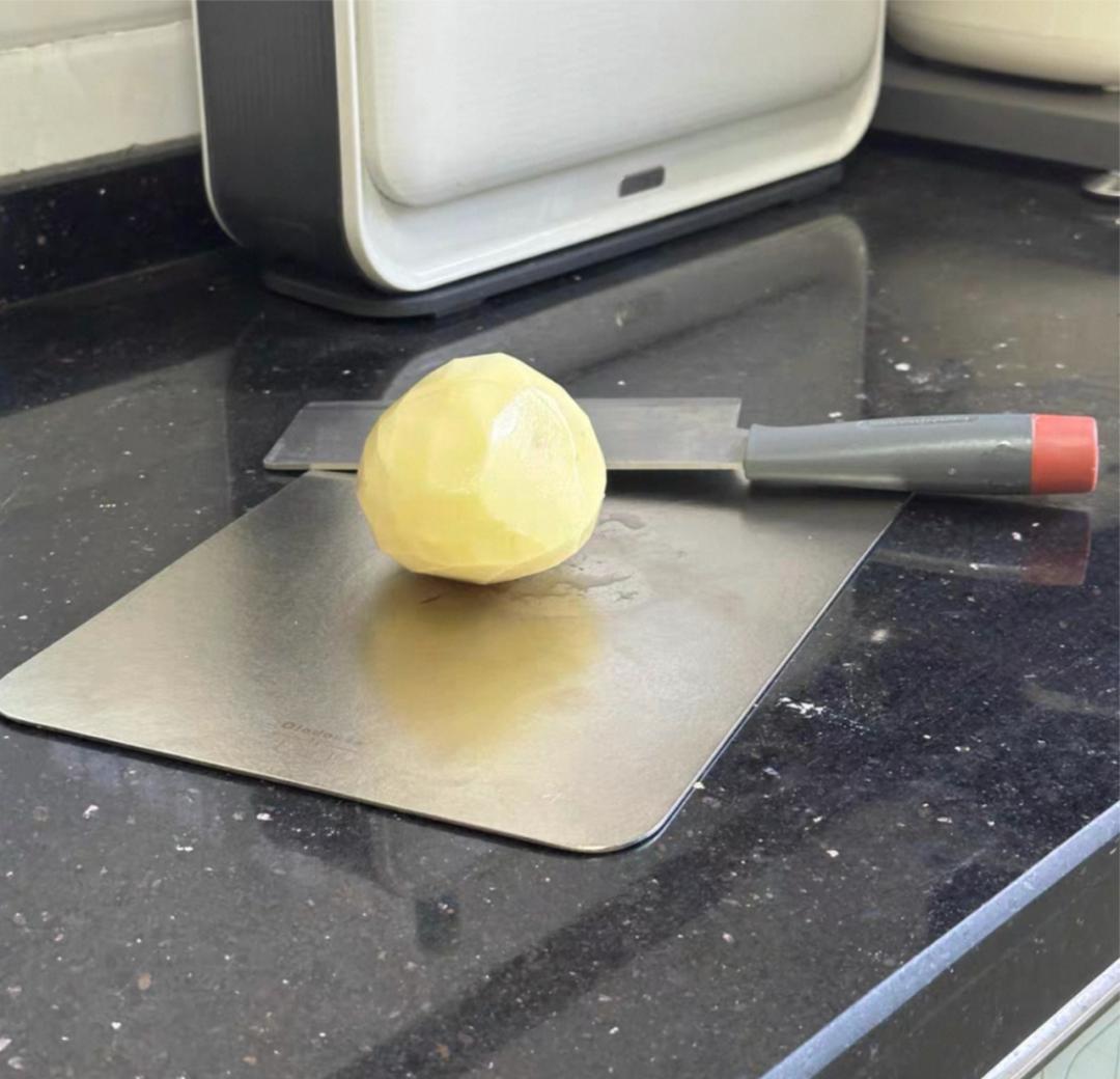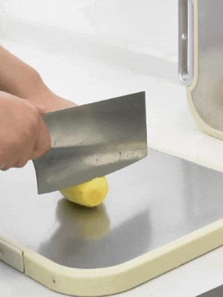 在鈦板表面無論是切削了皮的土豆還是生肉,都不會打滑,能牢牢地「抓」住食材。