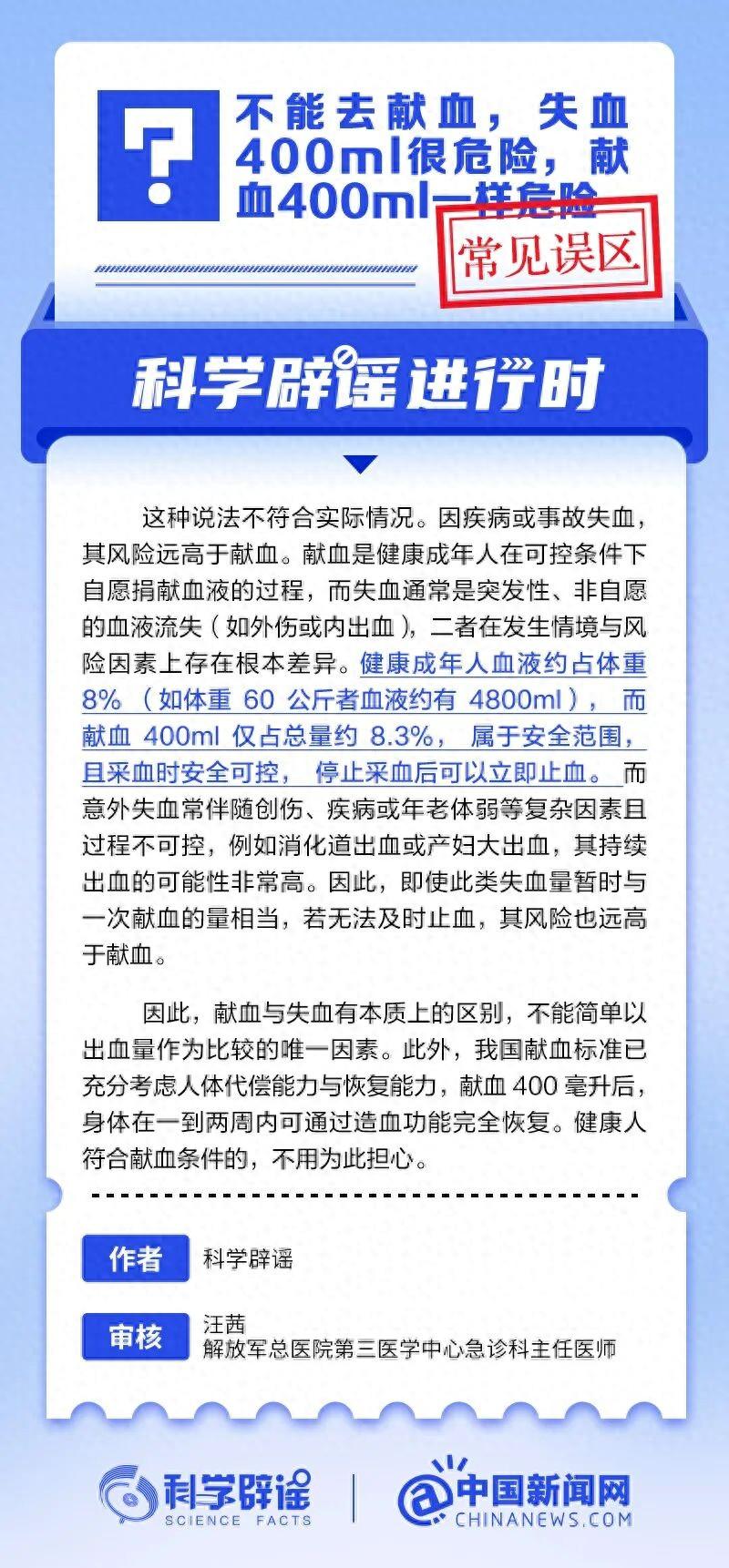 不能去獻血,失血400ml很危險,獻血400ml一樣危險?